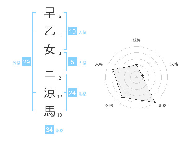 早乙女 ニ涼馬さんの総格は34画の2点!