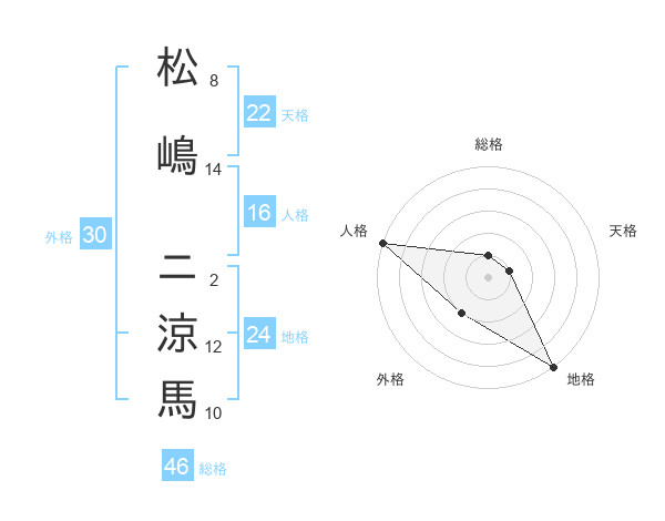 松嶋 ニ涼馬さんの総格は46画の1点!