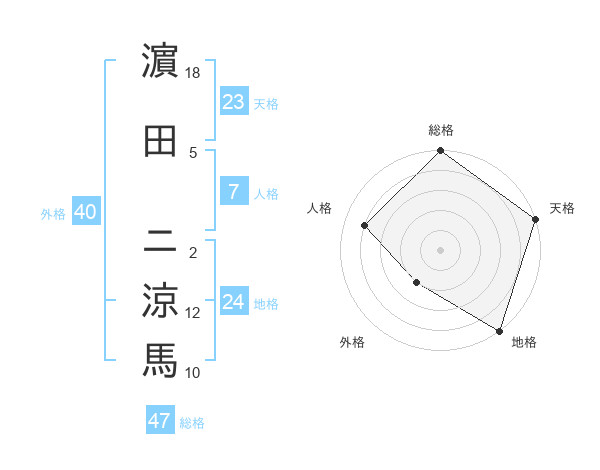 濵田 ニ涼馬さんの総格は47画の5点!