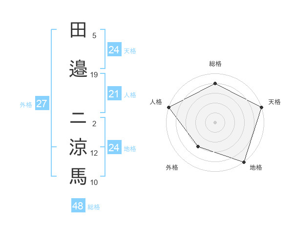 田邉 ニ涼馬さんを姓名の画数から五運を鑑定
