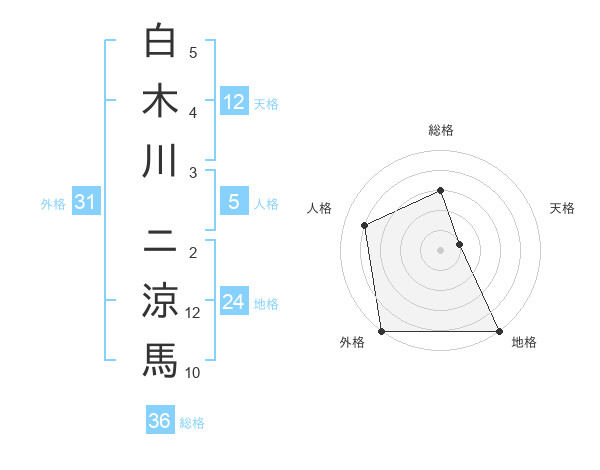 白木川 ニ涼馬さんを姓名の画数から五運を鑑定