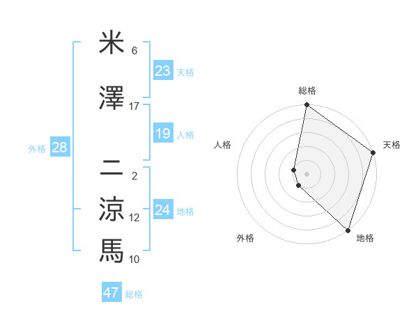 米澤 ニ涼馬さんを姓名の画数から五運を鑑定