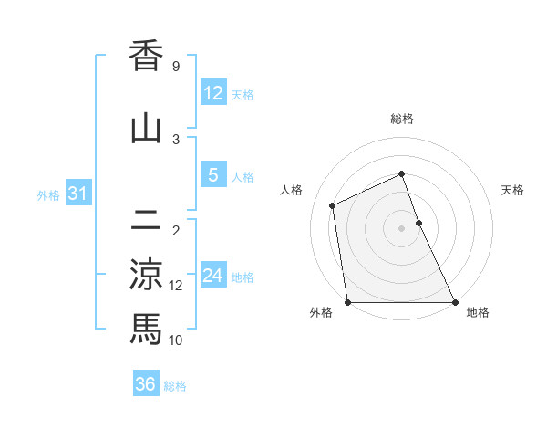香山 ニ涼馬さんを姓名の画数から五運を鑑定