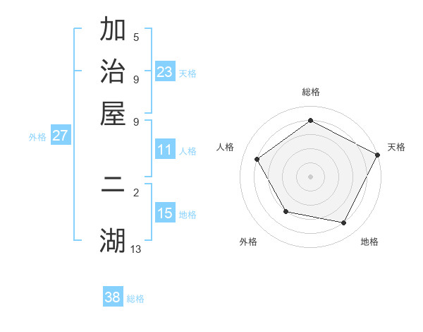 加治屋 ニ湖さんを姓名の画数から五運を鑑定