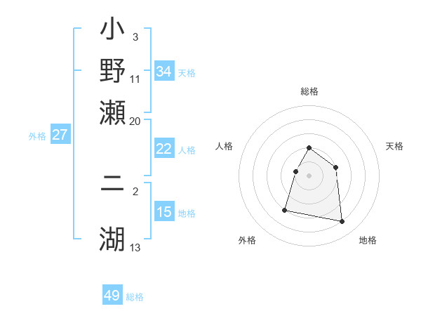 小野瀬 ニ湖さんを姓名の画数から五運を鑑定