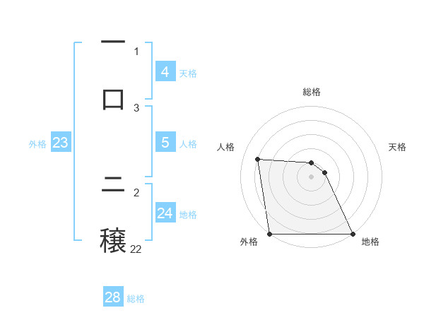 一口 ニ穣さんの外格は23画の5点!