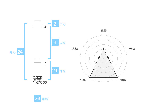 二 ニ穣さんの総格は26画の2点!