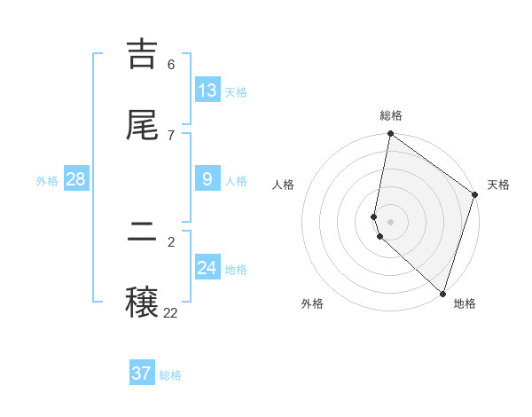 吉尾 ニ穣さんの総格は37画の5点!