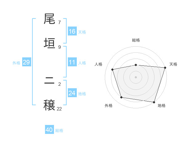 尾垣 ニ穣さんを姓名の画数から五運を鑑定