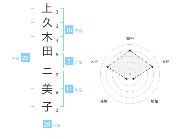上久木田 ニ美子さんの総格は29画の4点!