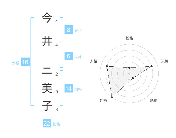 今井 ニ美子さんを姓名の画数から五運を鑑定