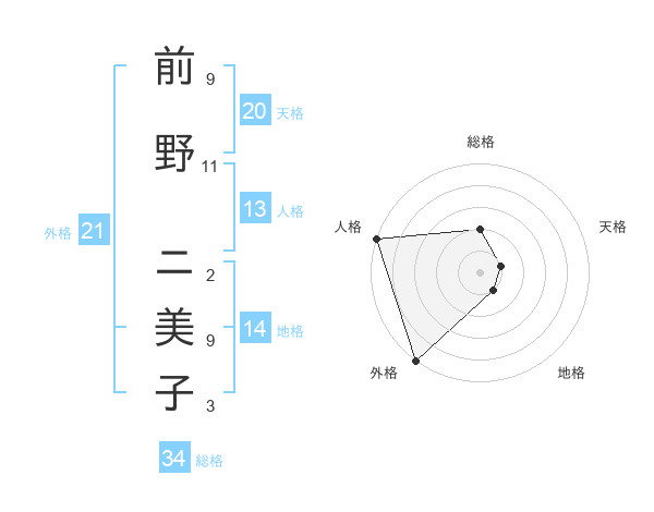 前野 ニ美子さんを姓名の画数から五運を鑑定