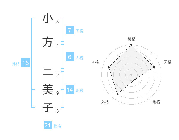 小方 ニ美子さんを姓名の画数から五運を鑑定