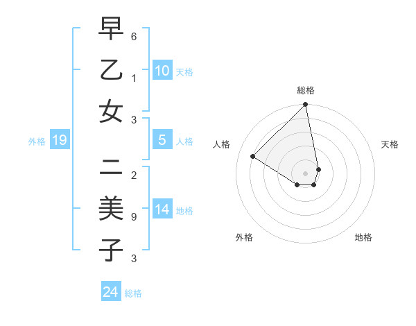 早乙女 ニ美子さんを姓名の画数から五運を鑑定