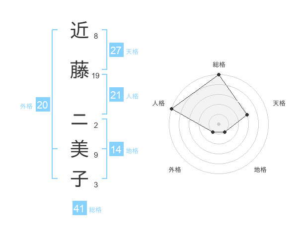 近藤 ニ美子さんを姓名の画数から五運を鑑定