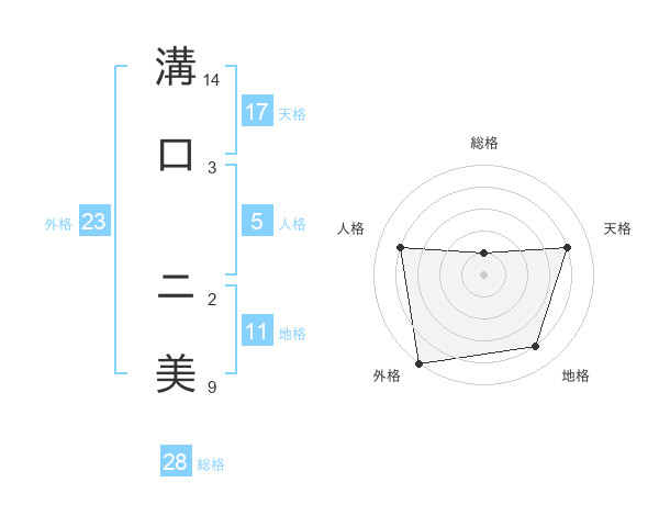 溝口 ニ美さんの外格は23画の5点!