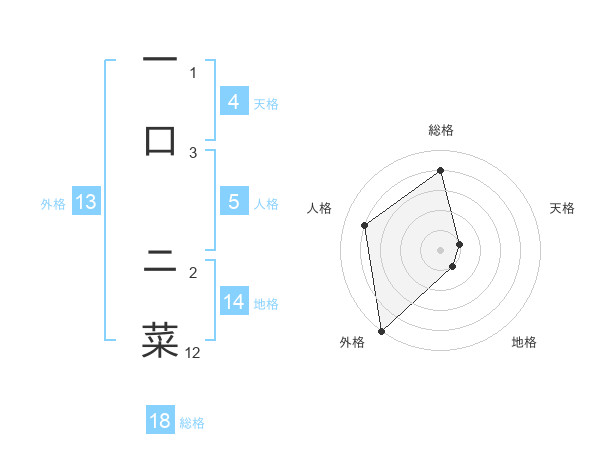 一口 ニ菜さんの外格は13画の5点!
