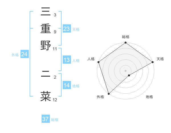 三重野 ニ菜さんを姓名の画数から五運を鑑定