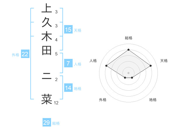 上久木田 ニ菜さんを姓名の画数から五運を鑑定