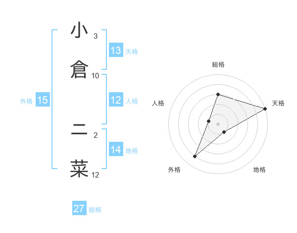 小倉 ニ菜さんを姓名の画数から五運を鑑定