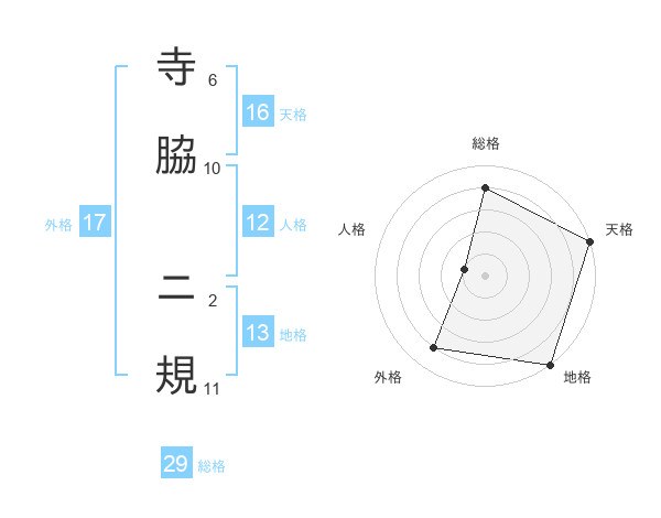 寺脇 ニ規さんを姓名の画数から五運を鑑定