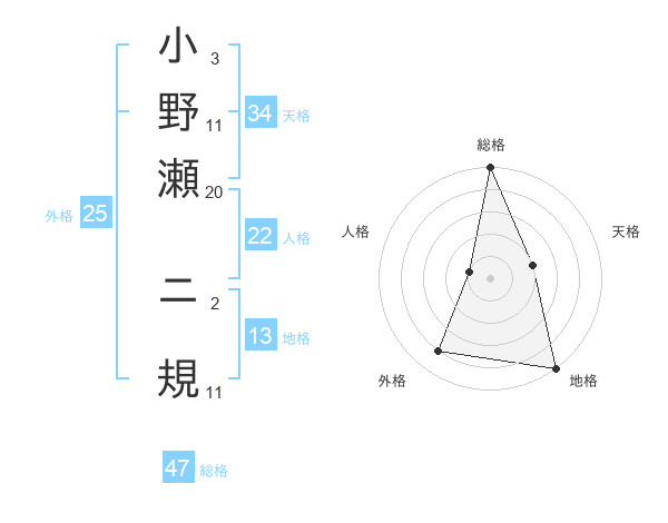 小野瀬 ニ規さんを姓名の画数から五運を鑑定