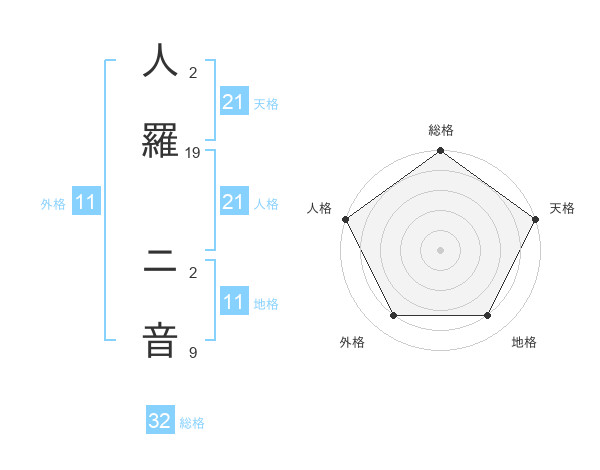 人羅 ニ音さんの外格は11画の4点!