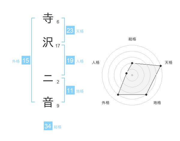 寺沢 ニ音さんの天格は23画の5点!
