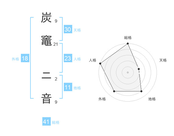 炭竈 ニ音さんの総格は41画の5点!