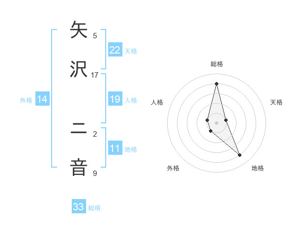 矢沢 ニ音さんを姓名の画数から五運を鑑定