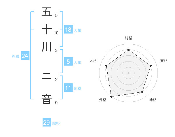 五十川 ニ音さんを姓名の画数から五運を鑑定