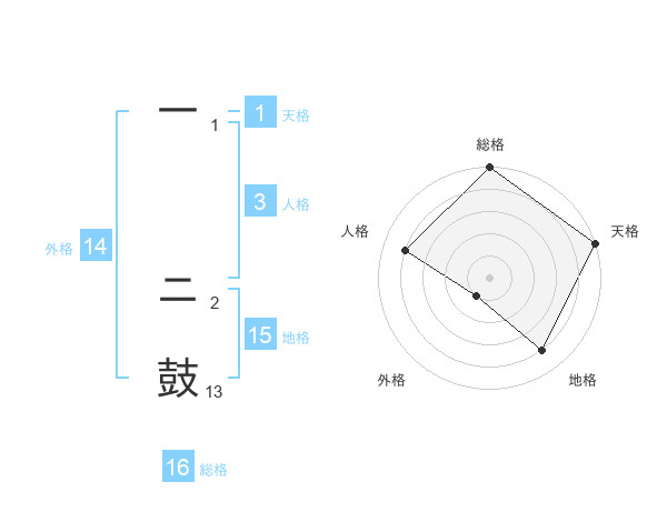一 ニ鼓さんの総格は16画の5点!