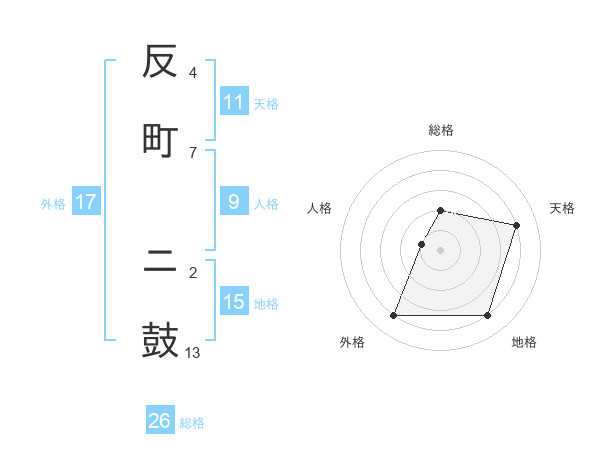 反町 ニ鼓さんの総格は26画の2点!