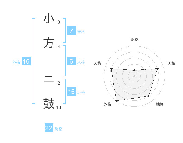 小方 ニ鼓さんの総格は22画の1点!
