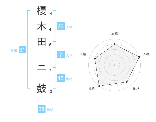 榎木田 ニ鼓さんを姓名の画数から五運を鑑定