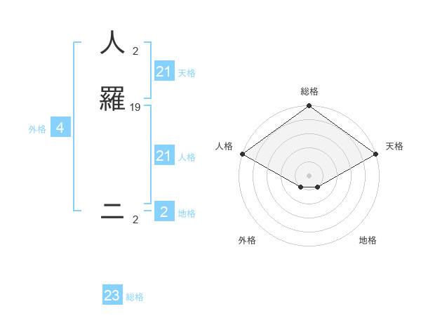 人羅 ニさんの天格は21画の5点!