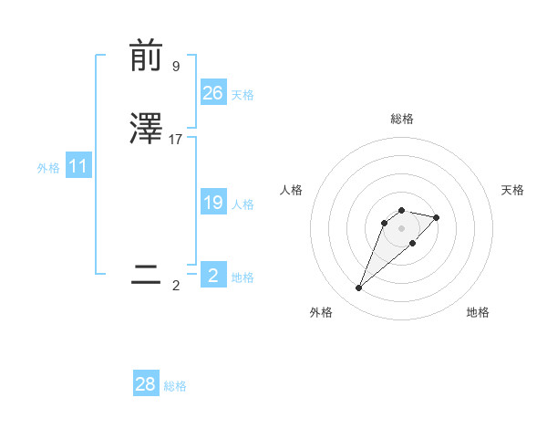 前澤 ニさんの天格は26画の2点!