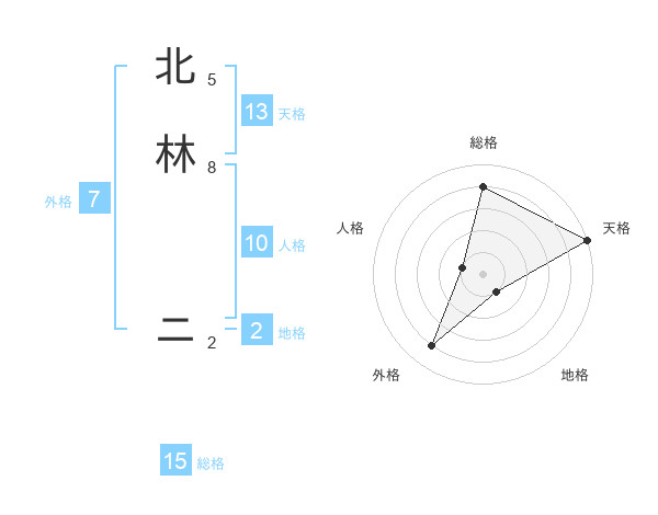 北林 ニさんの天格は13画の5点!