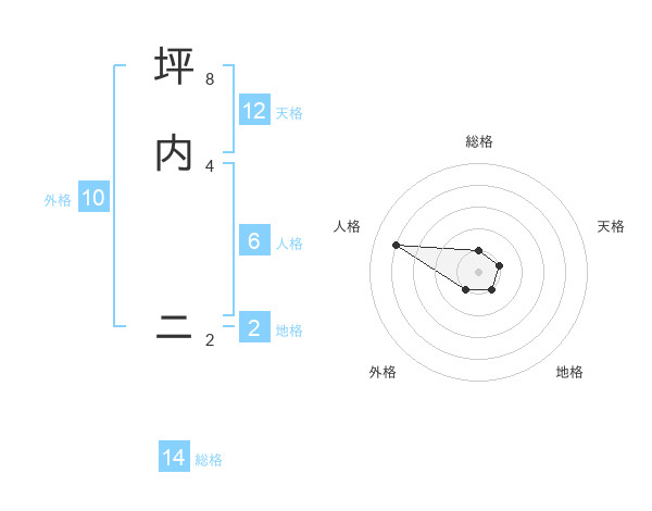 坪内 ニさんを姓名の画数から五運を鑑定