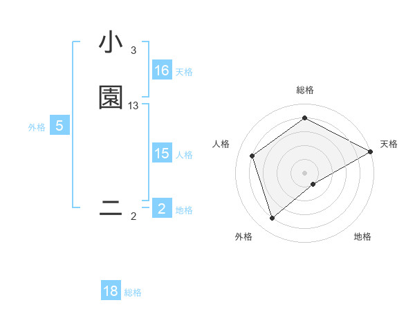 小園 ニさんの天格は16画の5点!