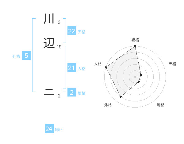 川辺 ニさんの外格は5画の4点!