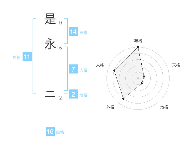 是永 ニさんの総格は16画の5点!