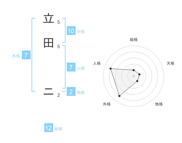 立田 ニさんの外格は7画の4点!