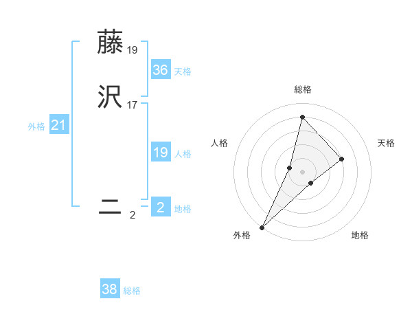藤沢 ニさんの天格は36画の3点!