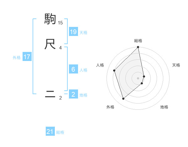 駒尺 ニさんを姓名の画数から五運を鑑定