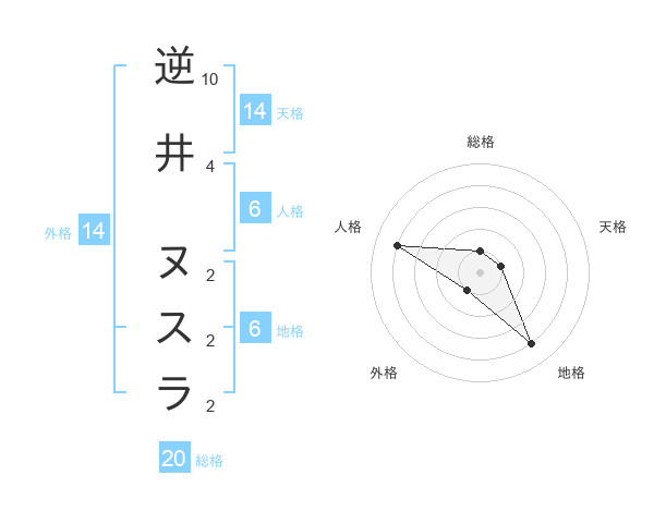 逆井 ヌスラさんの外格は14画の1点