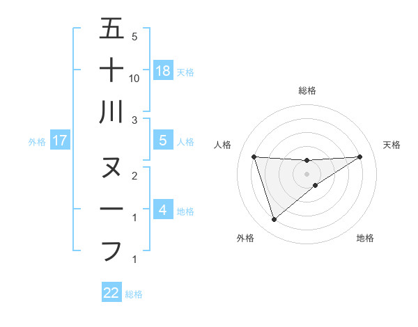 五十川 ヌーフさんを姓名の画数から五運を鑑定