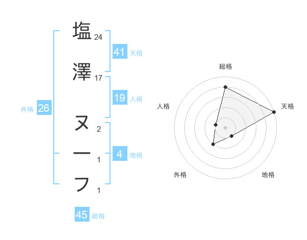 塩澤 ヌーフさんを姓名の画数から五運を鑑定