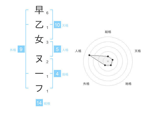 早乙女 ヌーフさんを姓名の画数から五運を鑑定