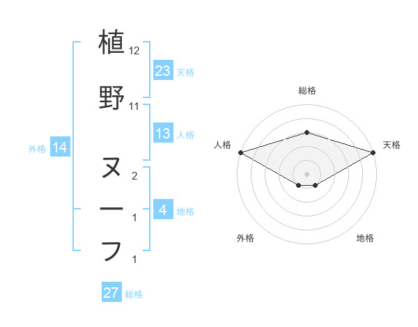 植野 ヌーフさんの総格は27画の3点!